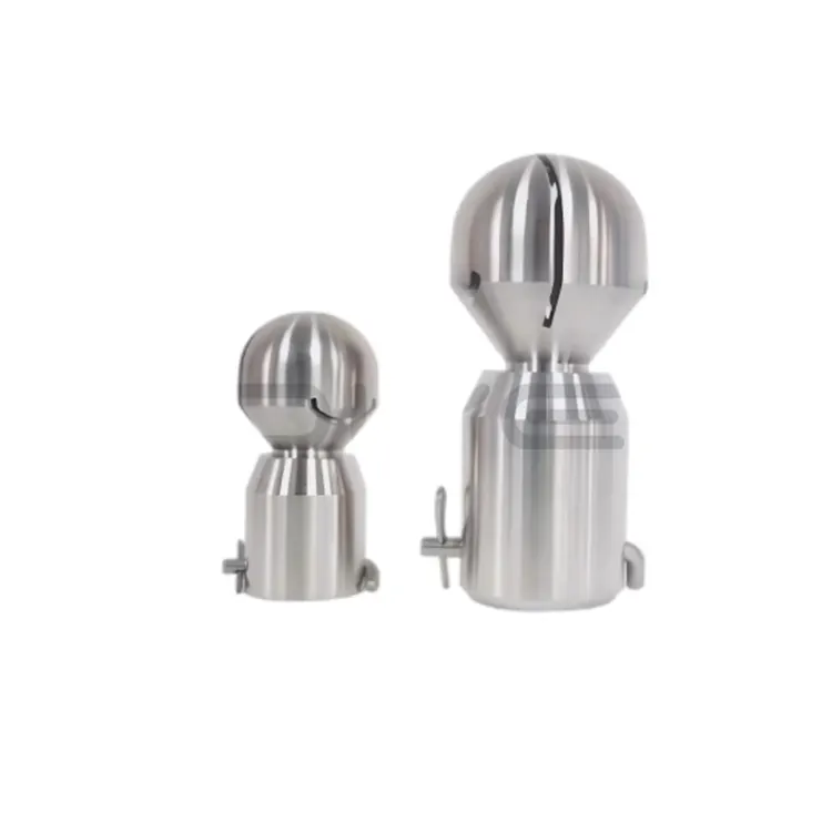 Санитарна лопта за прскање има ротирајућу структуру за 360°, коју аутоматски покреће вода под високим притиском, не захтева спољно напајање. Пажљиво дизајниран угао прскања свеобухватно покрива унутрашње зидове резервоара за складиштење, ферментора, реактора и друге опреме, постижући темељно чишћење без мртвих тачака. Ово ефикасно решава проблем остатка материјала изазваног непотпуним чишћењем, значајно побољшавајући ефикасност чишћења у поређењу са традиционалним ручним чишћењем или фиксном опремом за прскање.